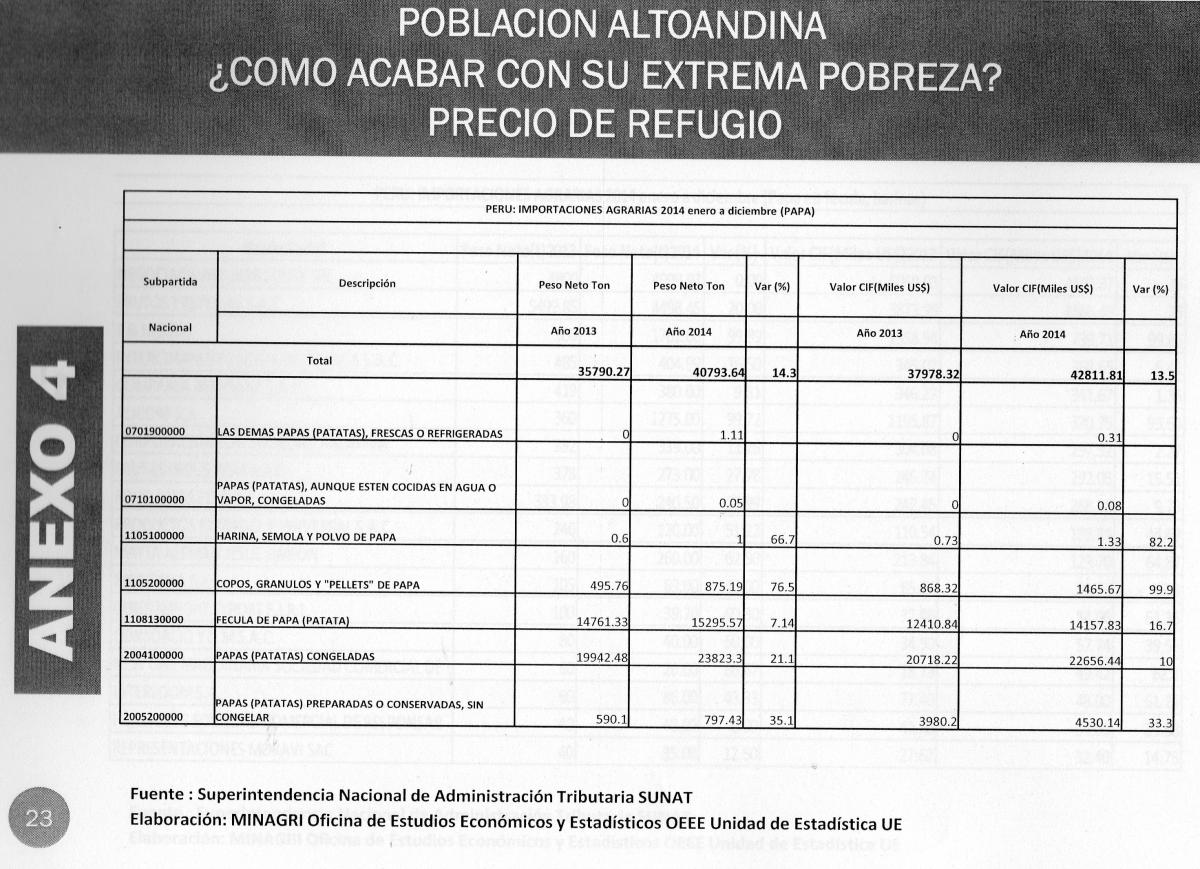 (Anexo 4 Importaciones de papa y derivados hacia el Perú, incluso por partida arancelaria)