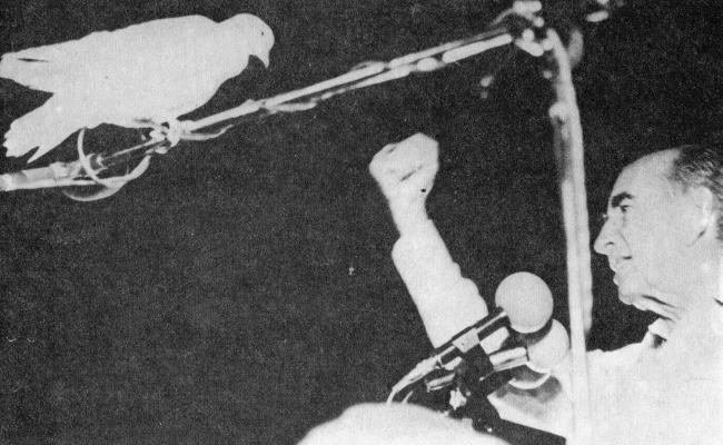 Que el Partido, tú y nosotros lo sabemos, lo forma este cuerpo místico de militantes que aclaman tu nombre, profesan tus ideas y se mantienen inflexibles en torno a tu línea moral. (Aplausos)