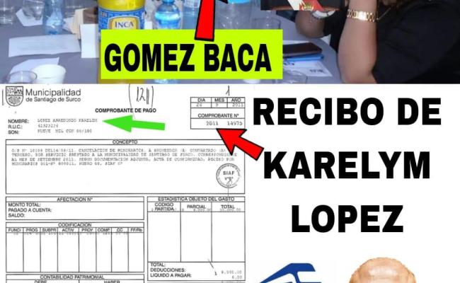 También figura en el legajo de Gómez Baca, los contratos otorgados, desde la Municipalidad de Santiago de Surco, a la lobbista Karelim López Arredondo, hoy conocida por participar en actos de corrupción que investiga el Ministerio Público en el llamado escándalo de la casa de Sarratea, que involucra al presidente Pedro Castillo.