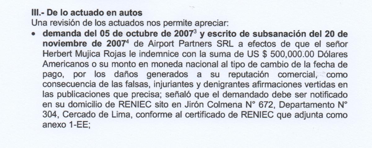 La empresa concesionaria del Aeropuerto Internacional Jorge Chávez, Lima Airport Partners –LAP-, la misma que pocas semanas atrás recibió un portazo del MTC y Ositran, tras la denegatoria de la extensión de plazos para los terminales para 37 millones de usuarios, nos notifica su demanda civil pretendiendo la copiosa suma de US$ 500 mil requerida como indemnización de quien esto escribe.