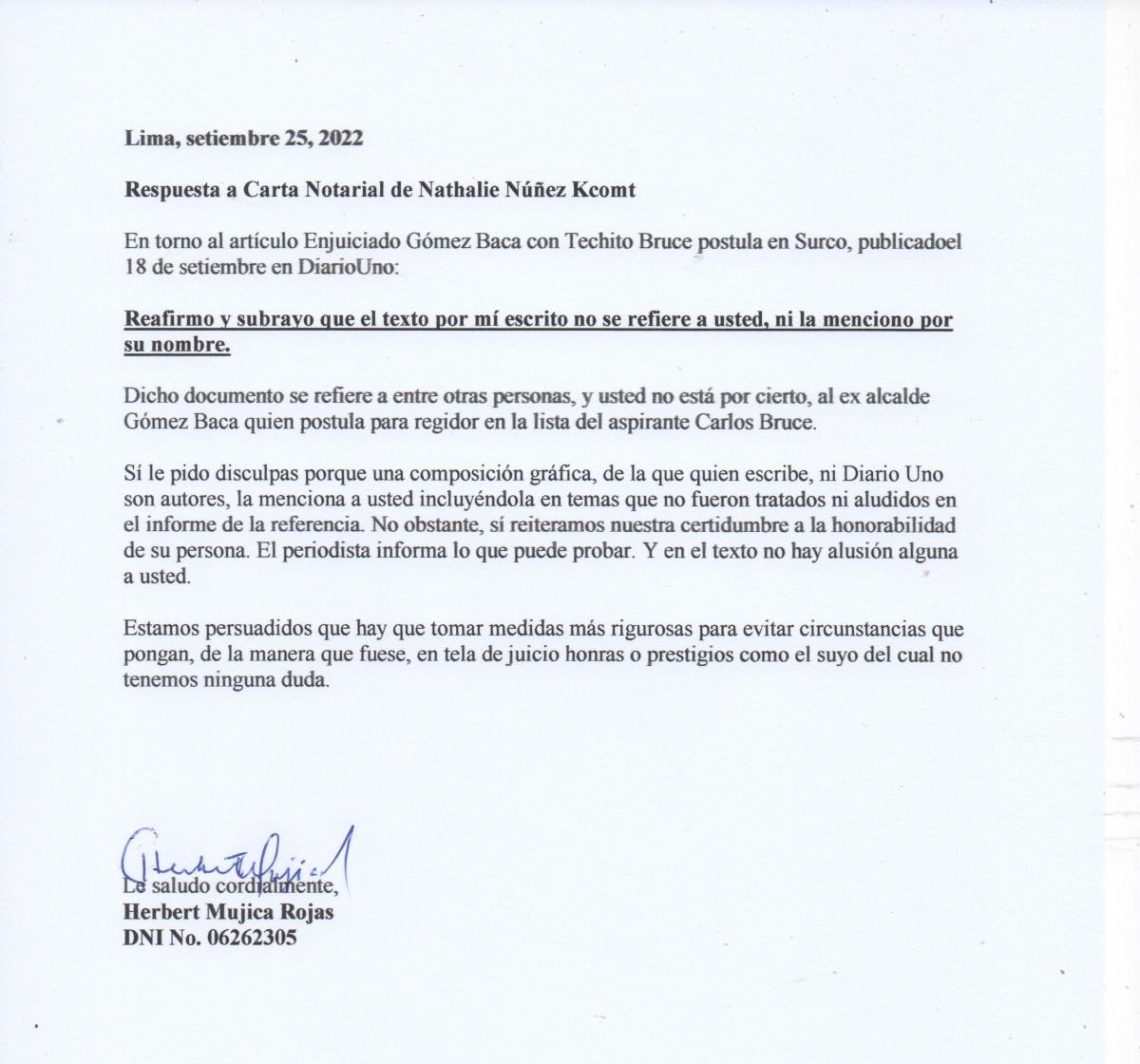 Respuesta a Carta Notarial de Nathalie Núñez Kcomt